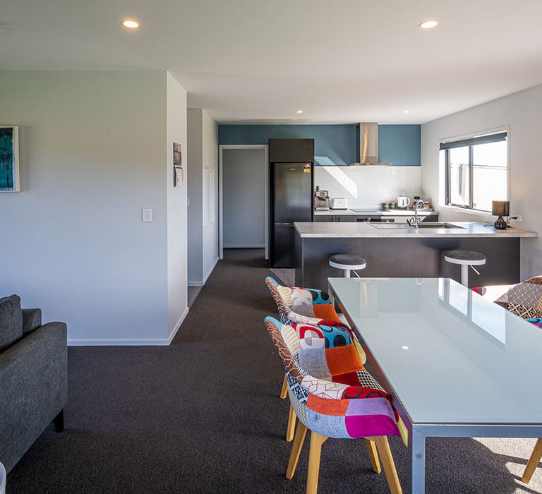 Rough Ridge has an open-plan living/dining/kitchen area with lots of different relax spaces and outdoor flow right onto a huge deck with gorgeous views. Full kitchen, large fridge and ice. Free WiFi, Smart TV, bluetooth speaker, books and games available. USB charging ports and LOTS of sockets.